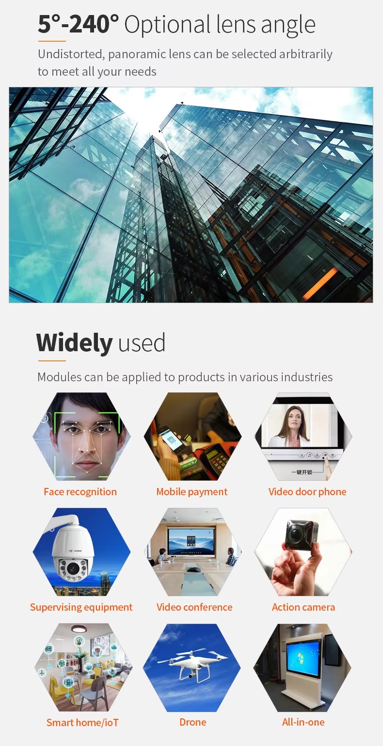Applications: Face recognition; Smart payment; Smart home; Drone; Robot; Security monitoring; Action camera; Videoconferencing, etc.