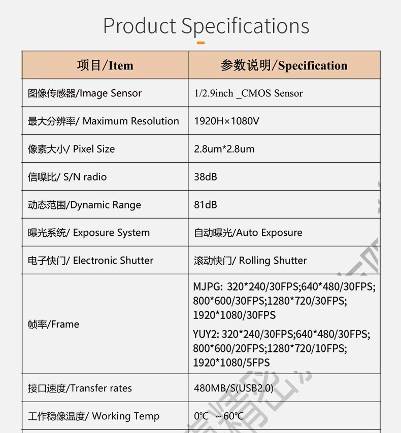 • Sensor: GC20A3T(1/2.9″)CMOS