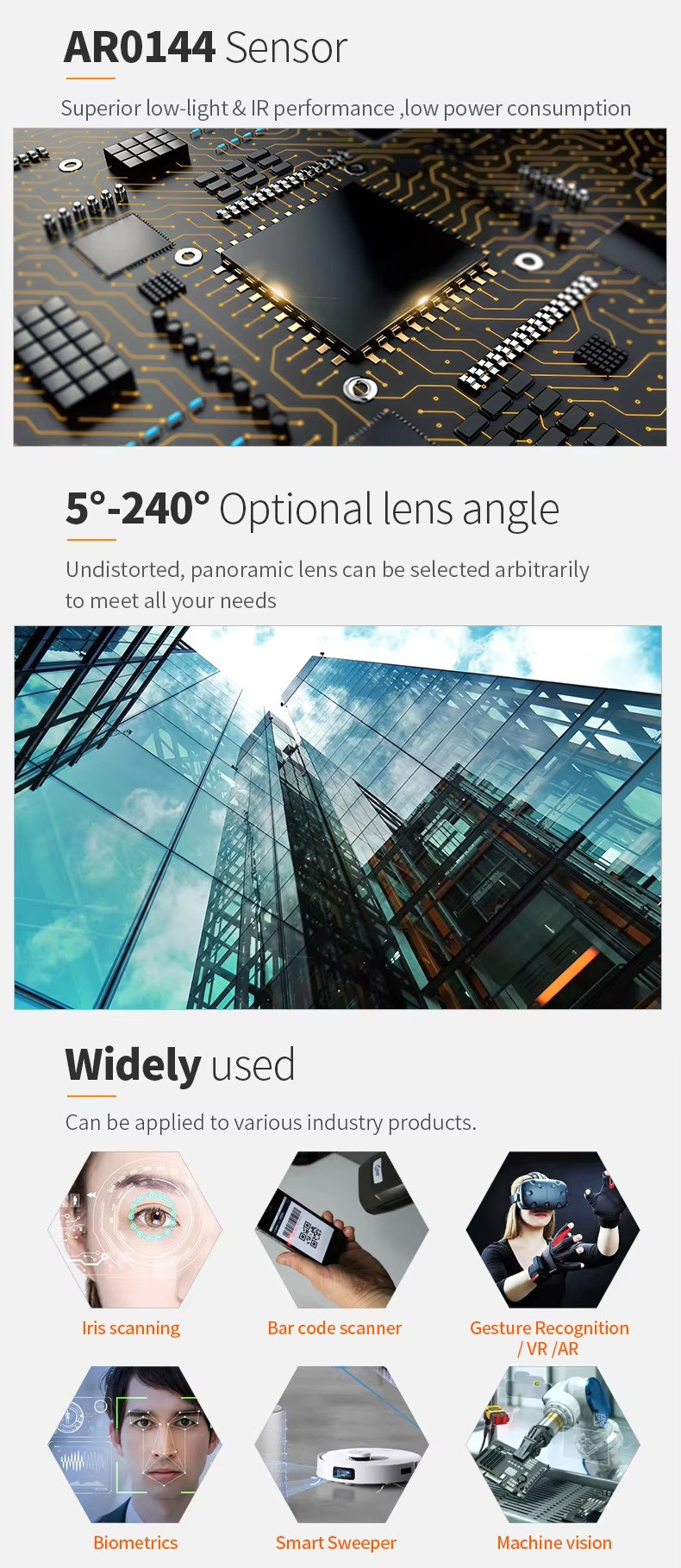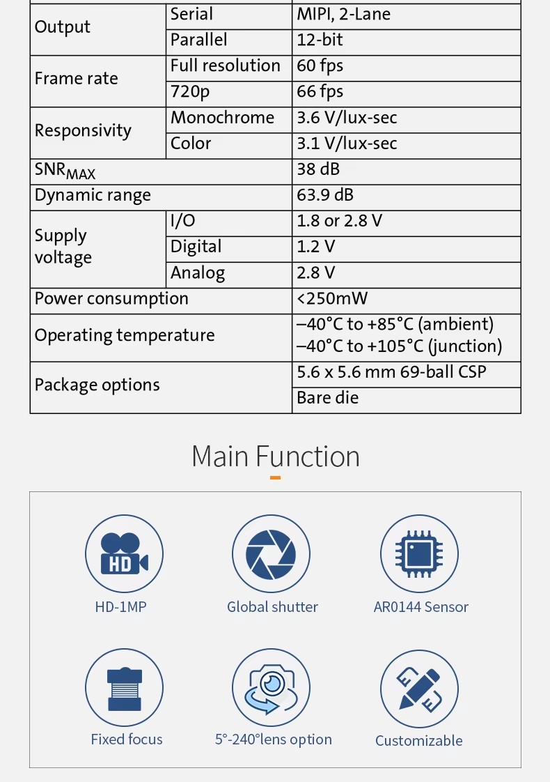 - Sensor: AR0144(1/4″)CMOS