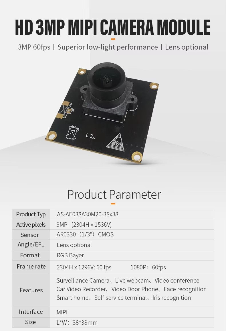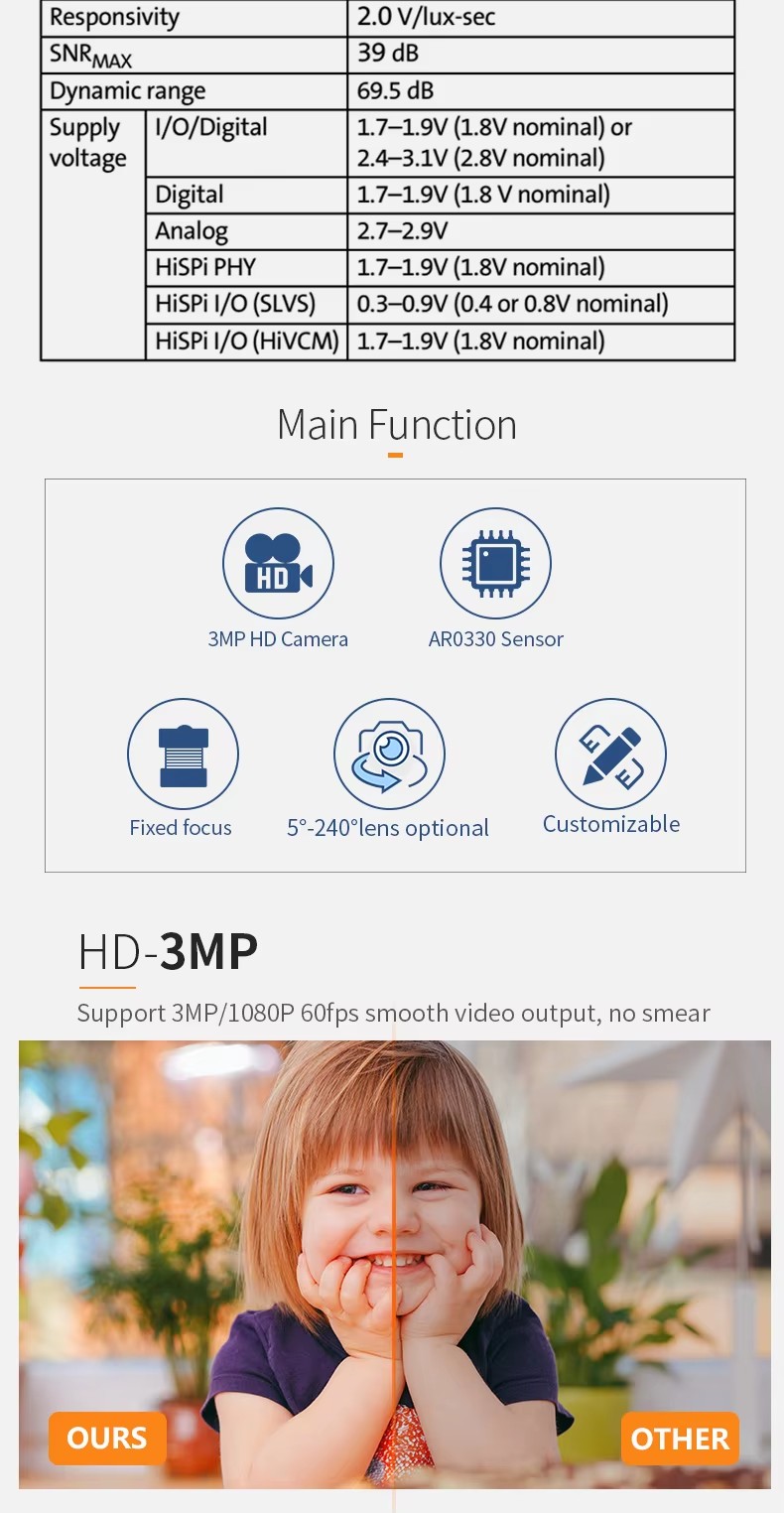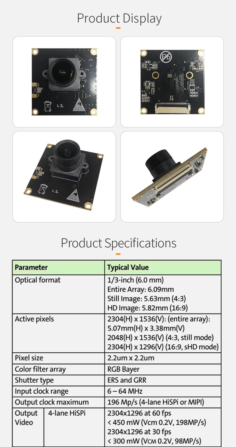 - Frame rate: 2304Hx1296V: 60 fps, 1080P: 60fps