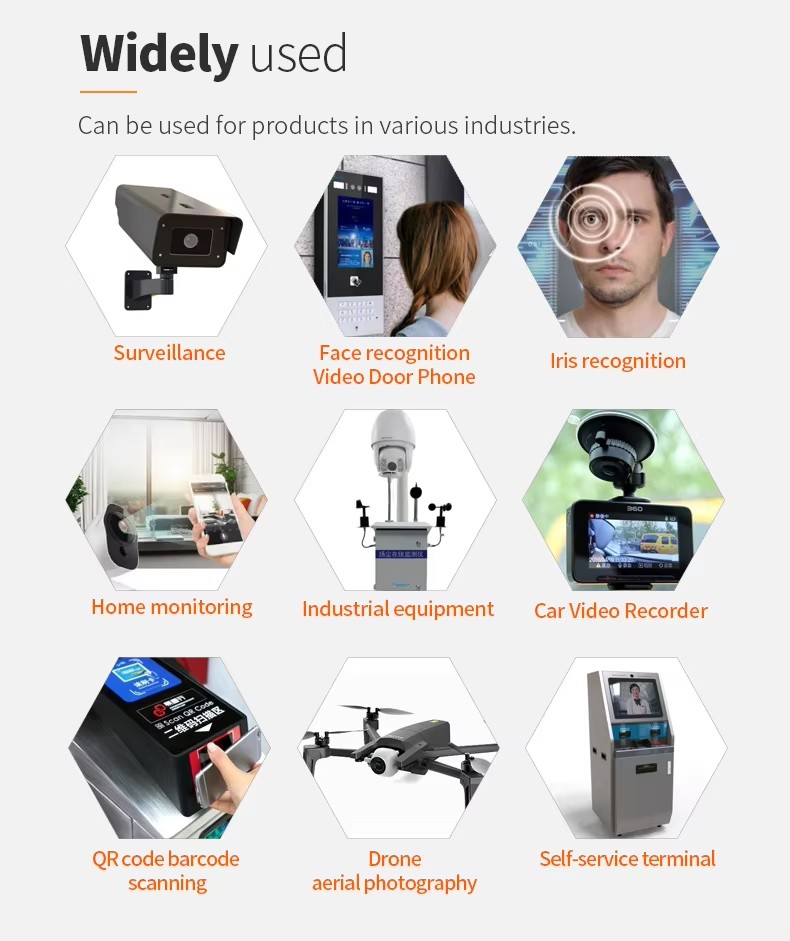 Features: Surveillance Camera. Live webcam, Video conference, Video Recorder, Video Door Phone, Face recognition, Smart home, Self-service terminal, Iris recognition