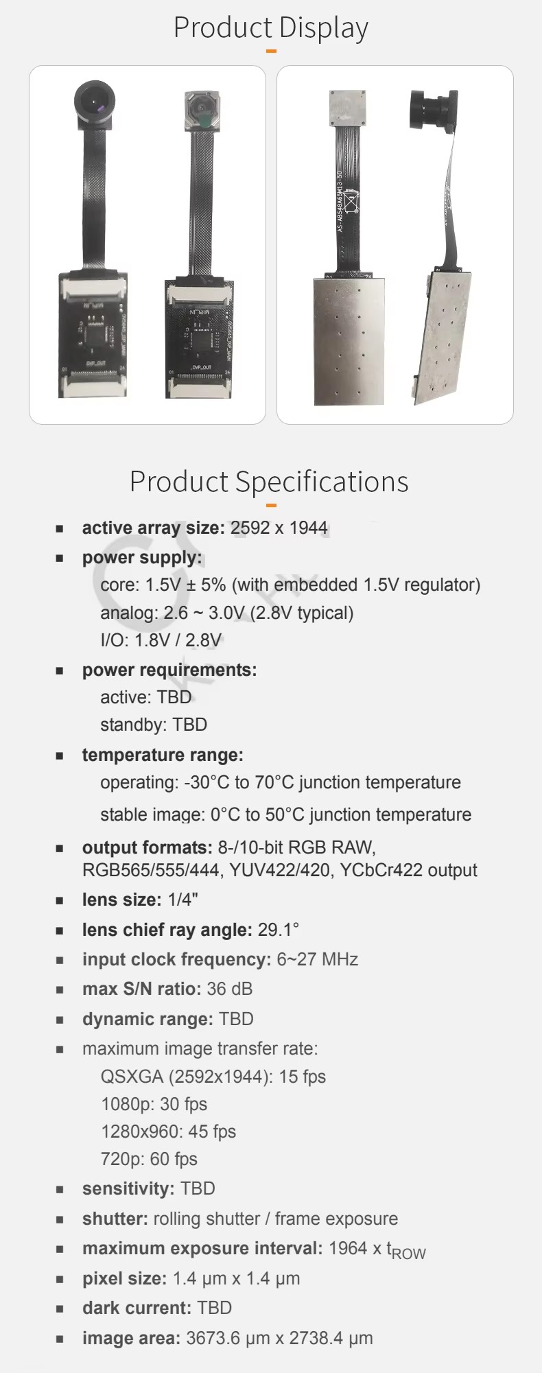 - Format: RAW RGB,RGB565/555/444、YUV422/420、YCbCr422