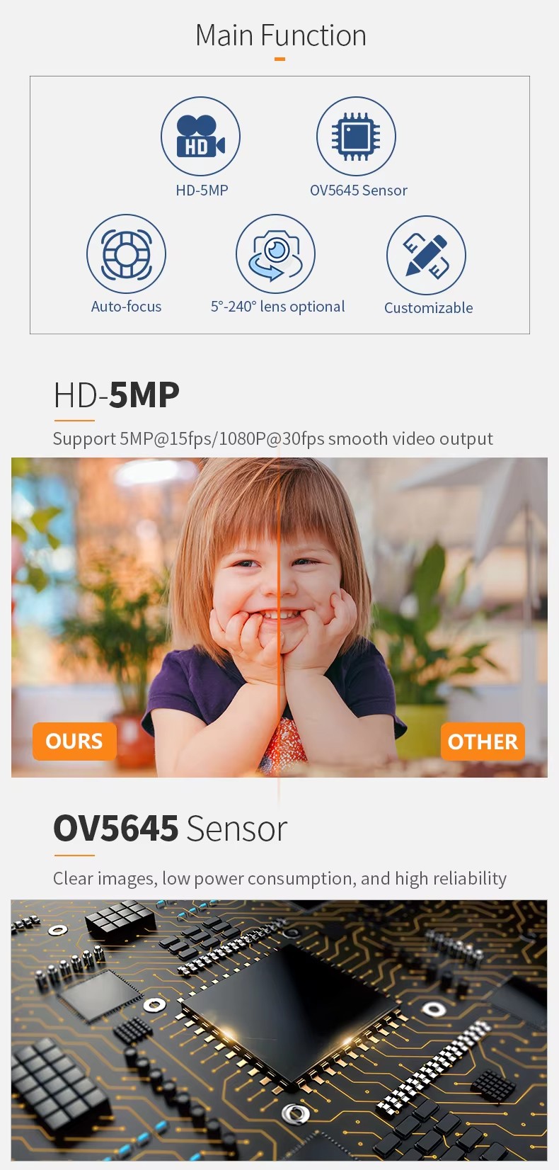 DGZX 5MP Wide-Angle OV5645 2K MIPI to DVP Camera Module