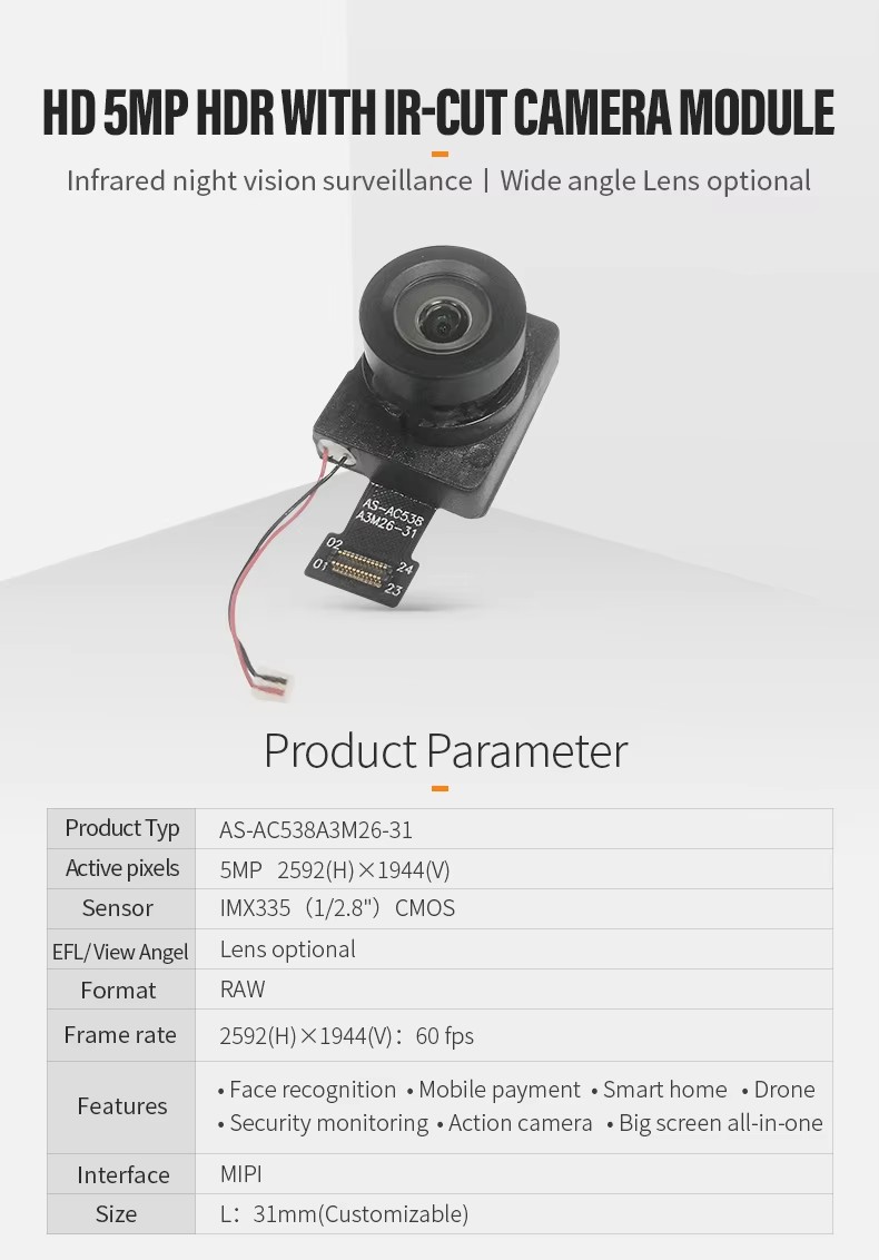 DGZX IMX335 5MP 2K MIPI Wide-Angle with IR-CUT Camera Module
