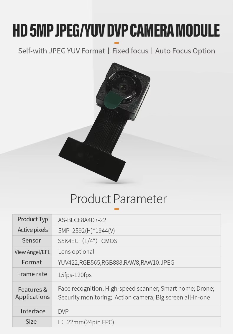 HD 5MP JPEG/YUV DVP Camera Module