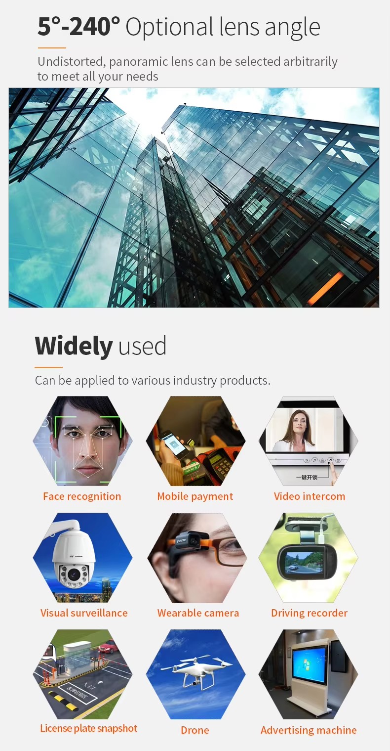 Features: Face recognition; Automotive surround view, rear view; Visual surveillance, Wearable camera; Smart home, etc