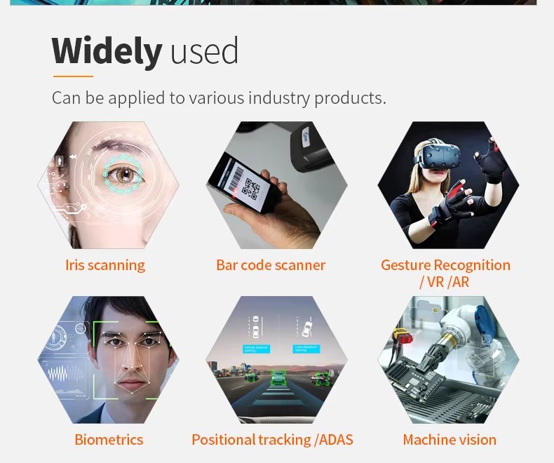 Features: Bar code scanner, Gesture Recognition, 3D scanning, Positional tracking, Iris scanning, Augmented reality, Virtual reality,  Biometrics, Machine vision