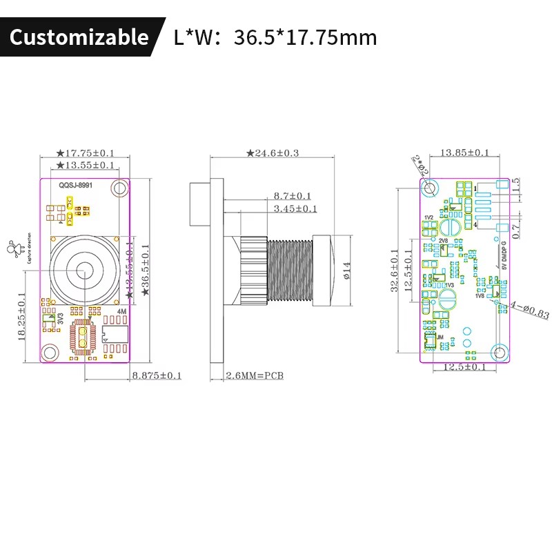 - Angle: 120°/2.4mm(Lens optional)