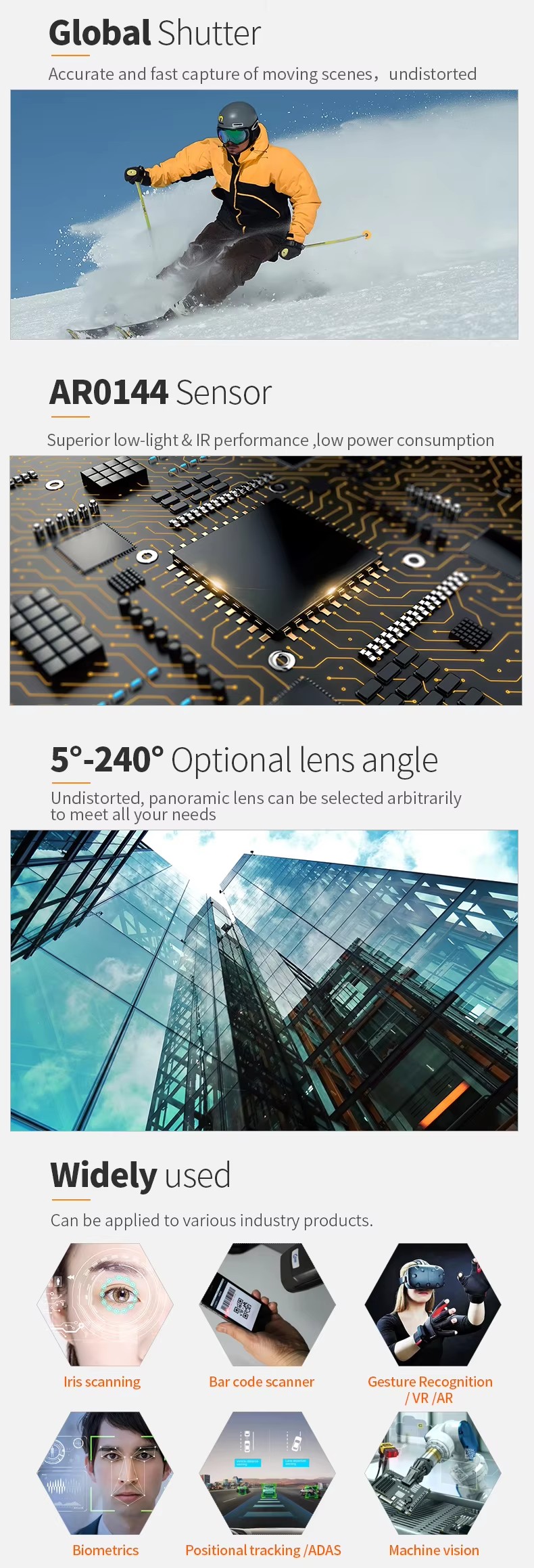 - Sensor: AR0144(1/4″)CMOS
