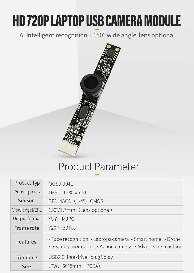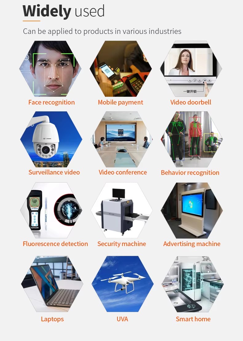 Features: Face recognition, Laptop camera, Smart home, Drone, Security monitoring, Action camera, Advertising machine