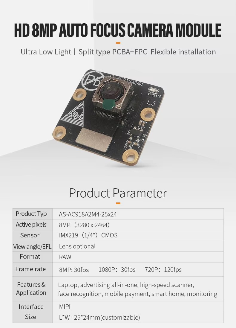 DGZX MIPI 8MP Auto Focus Low Power 4K Camera Module