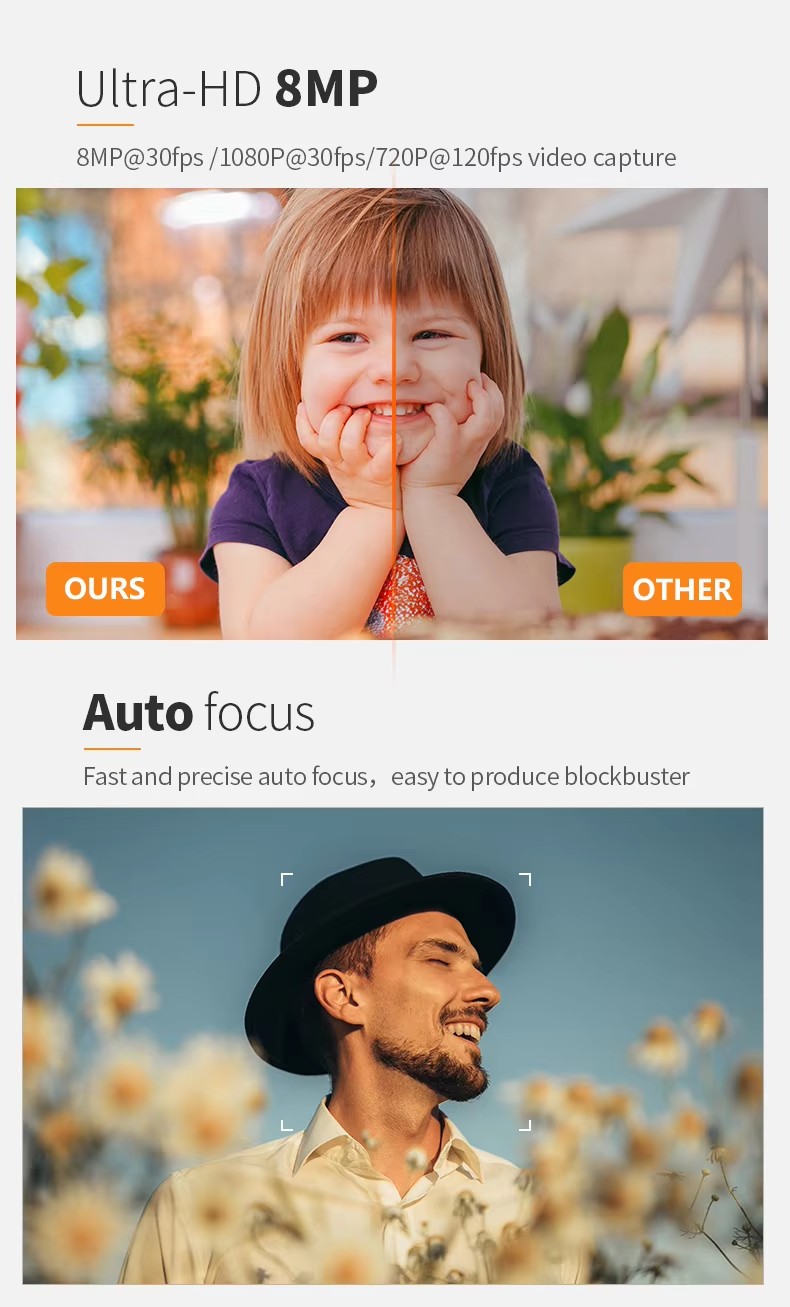 - Frame rate: 1080P:30fps, 720P:120fps, 8MP: 30fps