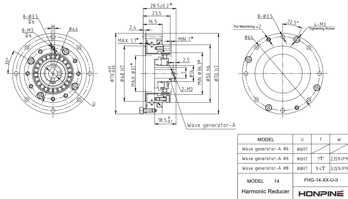 - The wave generator with a cross roller bearing coupling structure is easier to install.