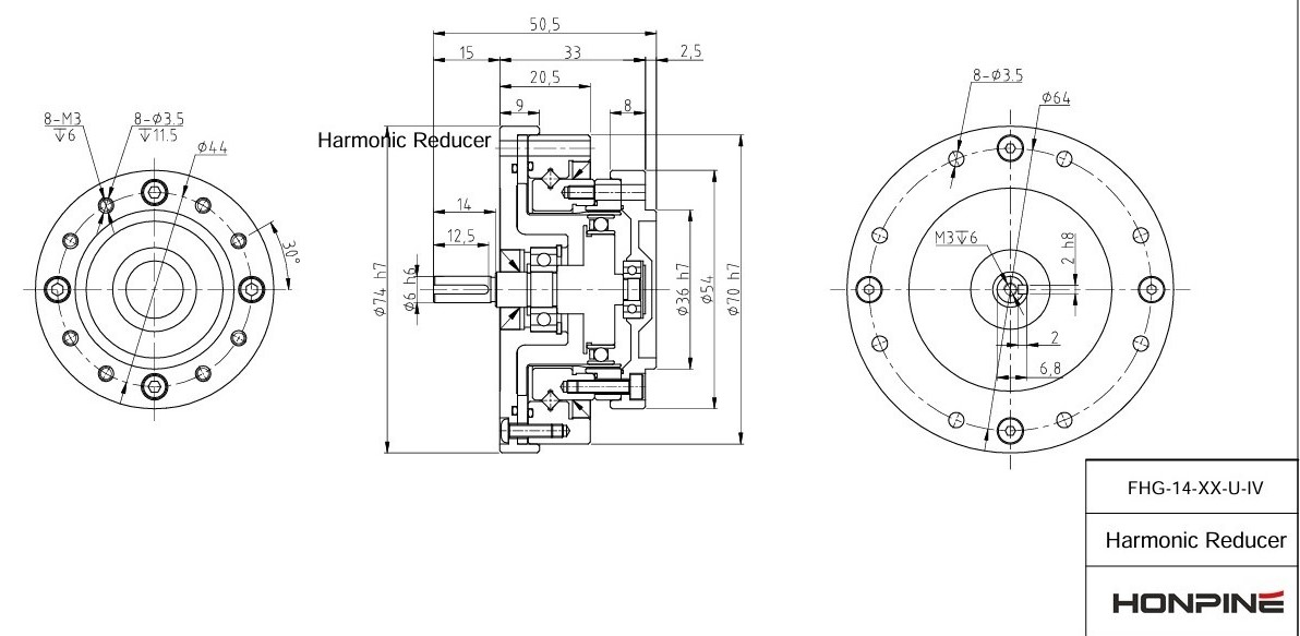 High rigidity Coaxial Input Output Strain Wave Harmonic Drive Gear Reducer HONPINE FHG-IV-14
