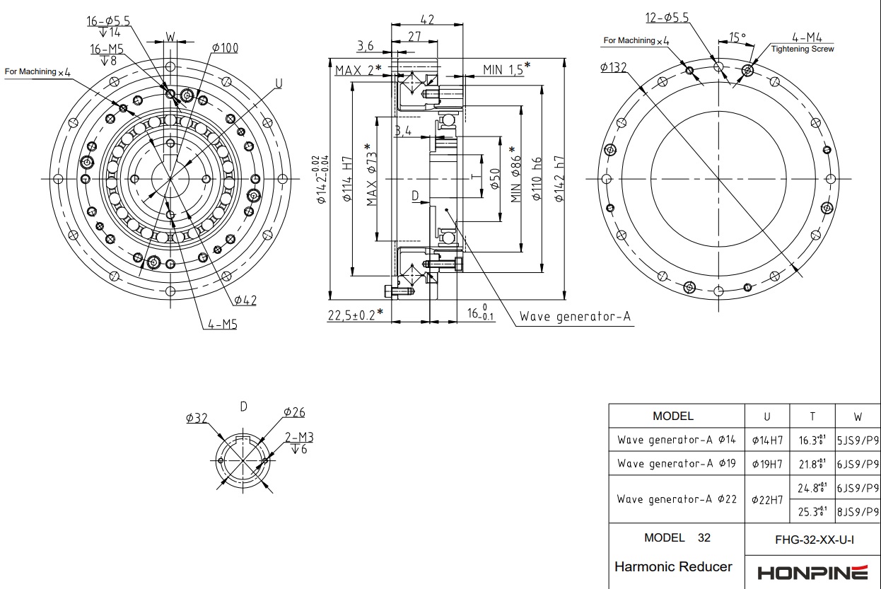 FHG-25-XX-U-I harmonic drive drawing