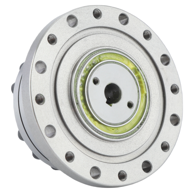 The FSG-I series Strain wave gear employs an integrated cam-type wave generator. The camshaft bore dimensions can be customized to match customer-specific motor models. The input shaft directly interfaces with the wave generator’s inner bore via a keyed connection. This system is typically configured with the circular spline fixed at the base and the flexspline functioning as the output end.