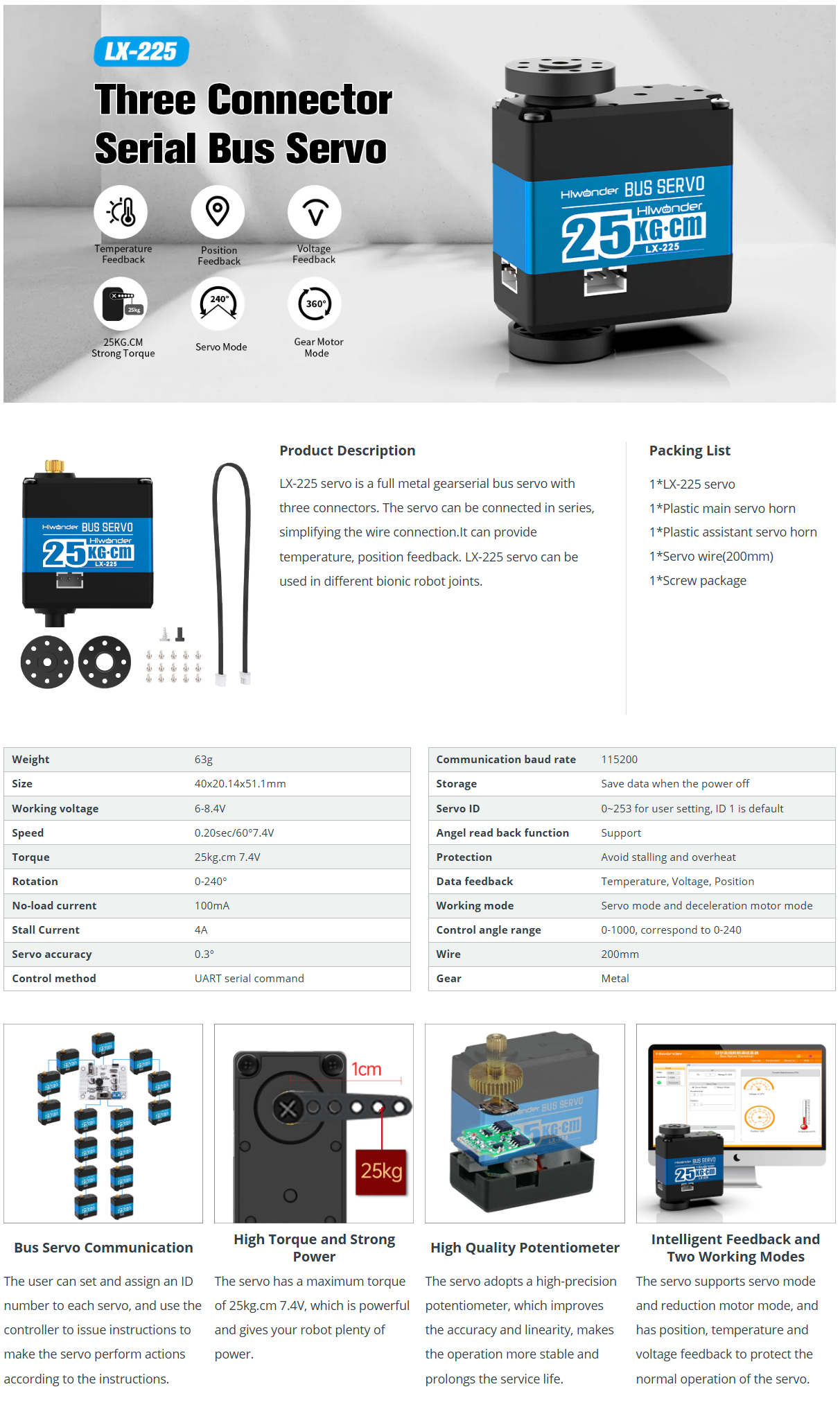 Hiwonder LX-225 Serial Bus Servo 25KG High Torque – Data Feedback