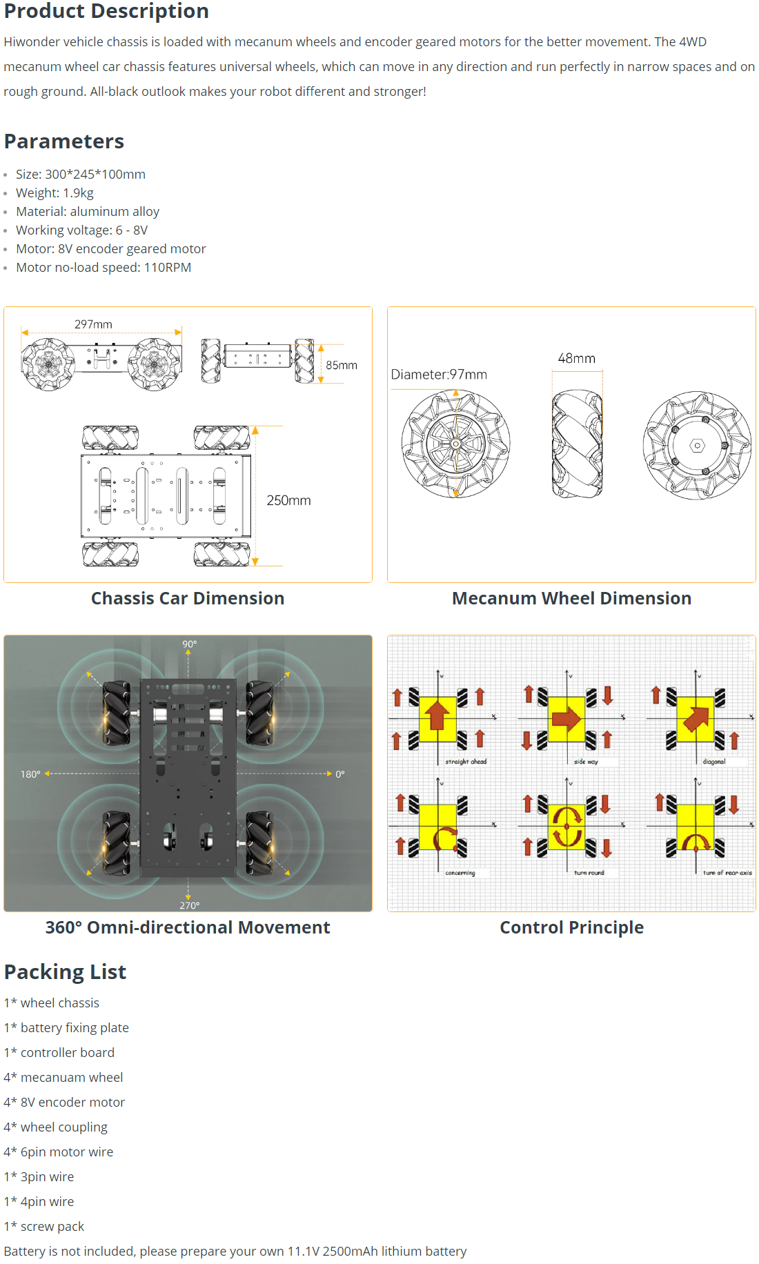 Hiwonder Metal 4WD Vehicle Chassis for Arduino Raspberry Pi ROS Robot with Encoder Geared Motor