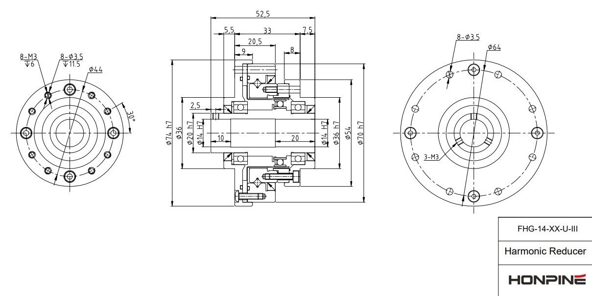 FHG-14-XX-U-III hollow shaft harmonic drive reducer