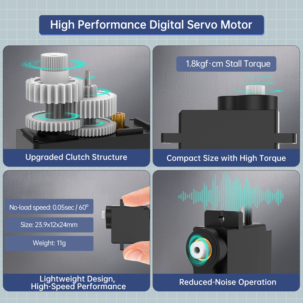 - High Torque Output: This motor provides up to 1.8 kgf·cm of torque at 7.4V, delivering strong, accurate power for demanding tasks that require reliable motion control.