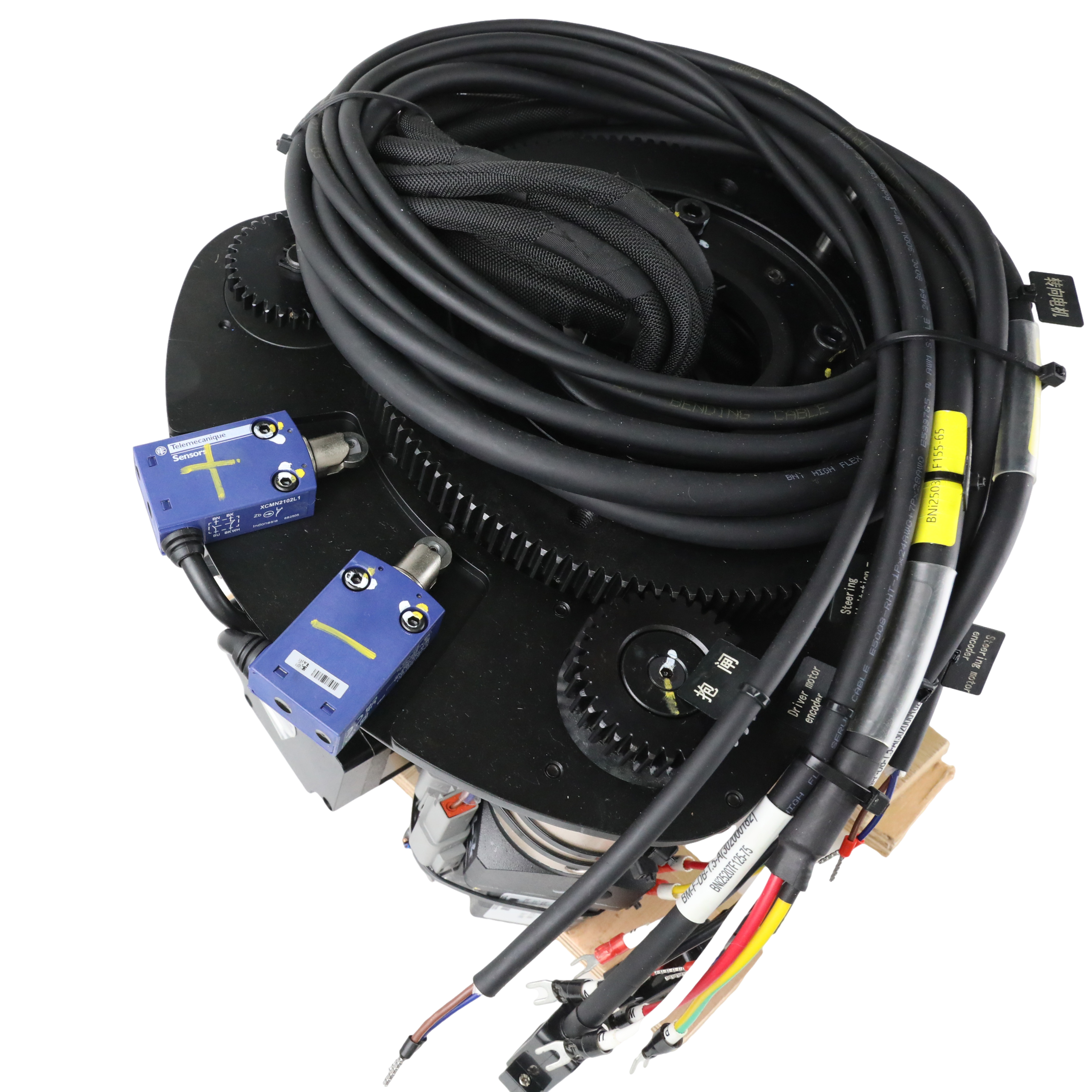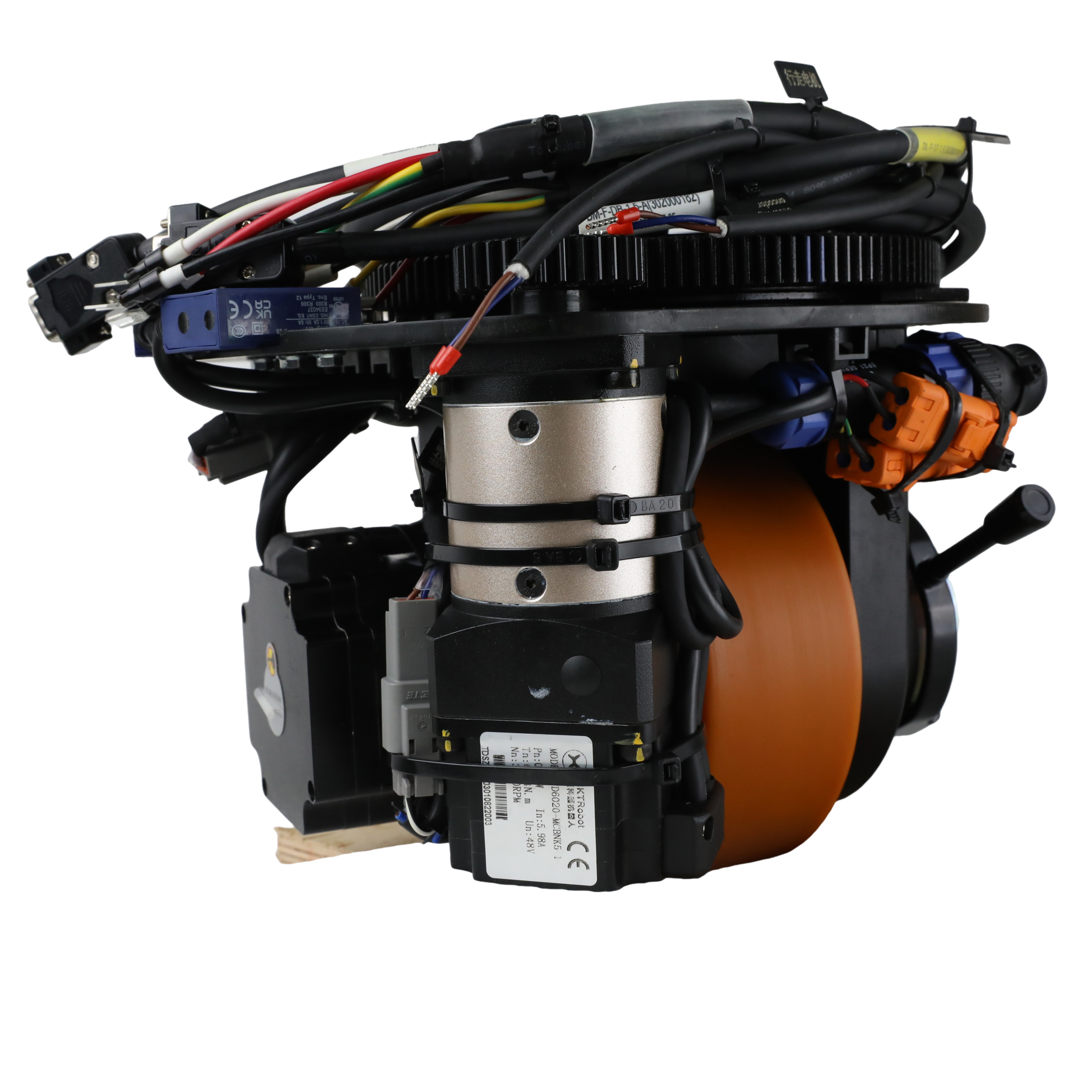 This industrial AGV horizontal steering wheel system is particularly suitable for forklift AGVs that operate with high loads and speeds. It is ideal for large manufacturing workshops, heavy logistics centers, and complex warehousing environments. It is a perfect choice for efficient industrial automation and forklift applications.
