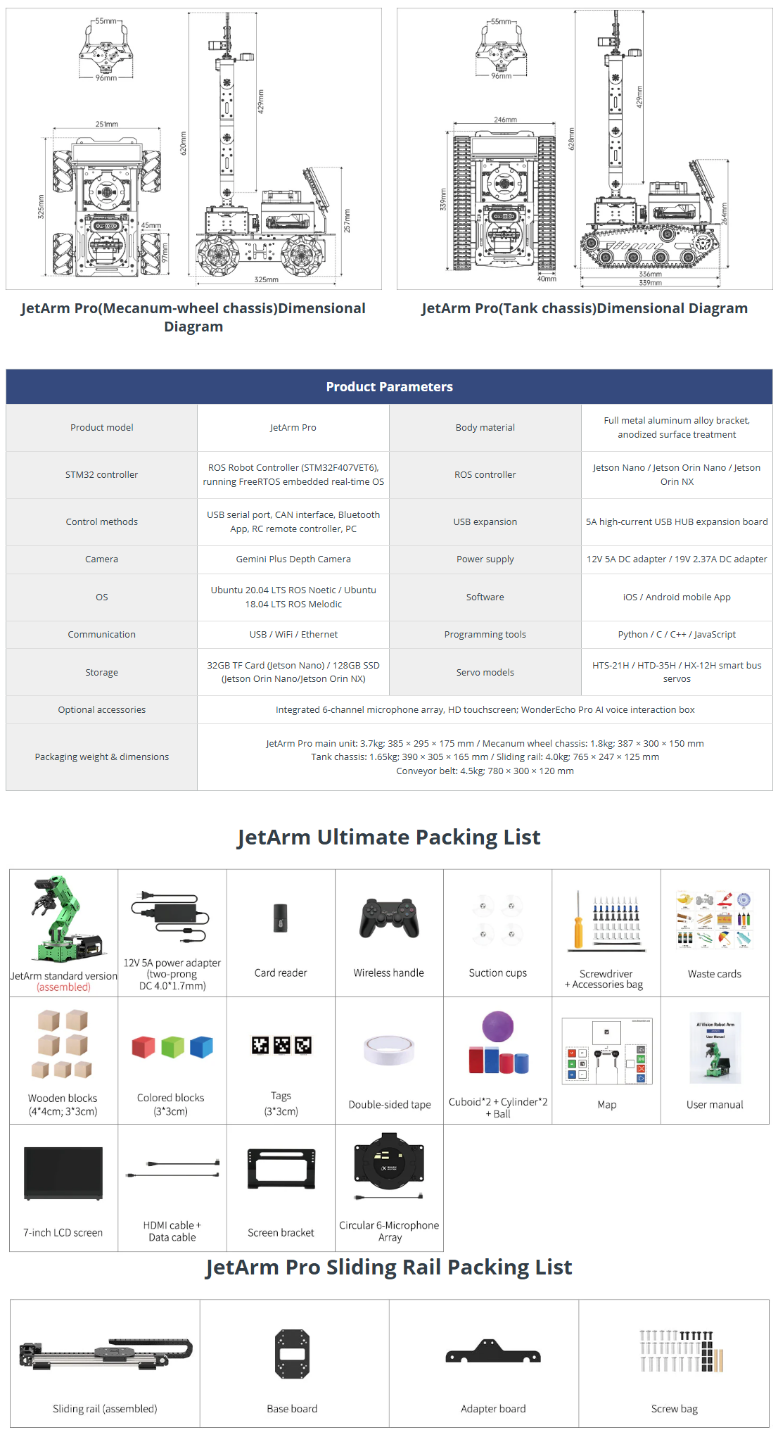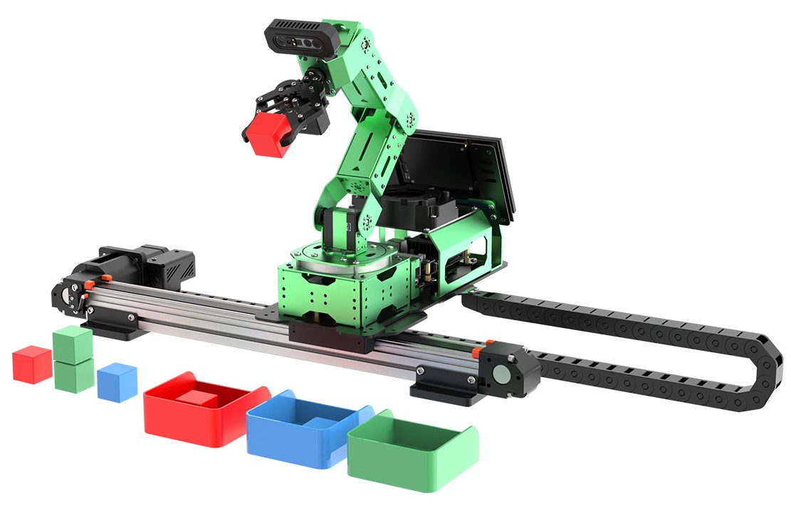 JetArm Pro is an AI-powered multimodal robot designed for ROS-based education. Upgraded from the JetArm robotic arm, it supports modular add-ons like mecanum/tank chassis, sliding rail, and conveyor belt, enabling applications such as intelligent transport, vision line following, and even automation. AI sorting systems. JetArm Pro can perceive, plan, and execute complex embodied AI tasks with built-in support for multimodal large models and integration with platforms like ChatGPT. Hiwonder provides open-source code, learning resources, and hands-on experiments to help users build and explore their AI projects easily.