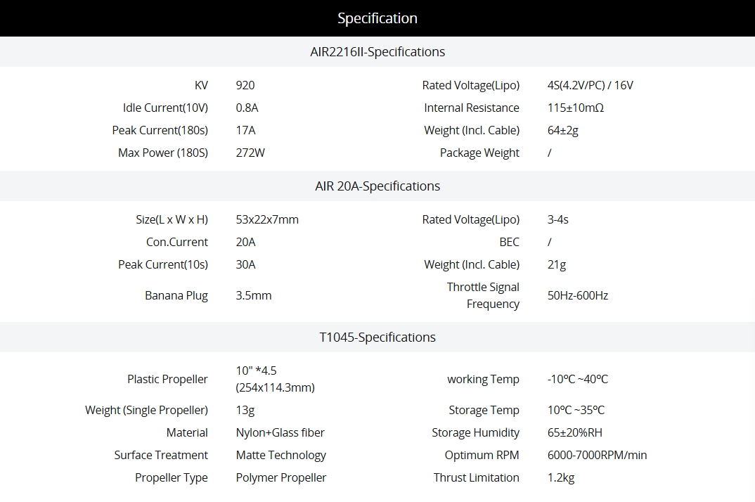 T-MOTOR Air Gear 450II Power Kit with ESC for Teaching and DIY Multirotor
