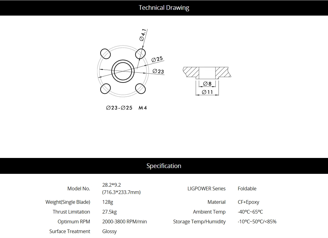 LIGPOWER FA28.2×9.2 Push Type Prop-2PCS/PAIR Folding Carbon Fiber Propeller For UAV Drone