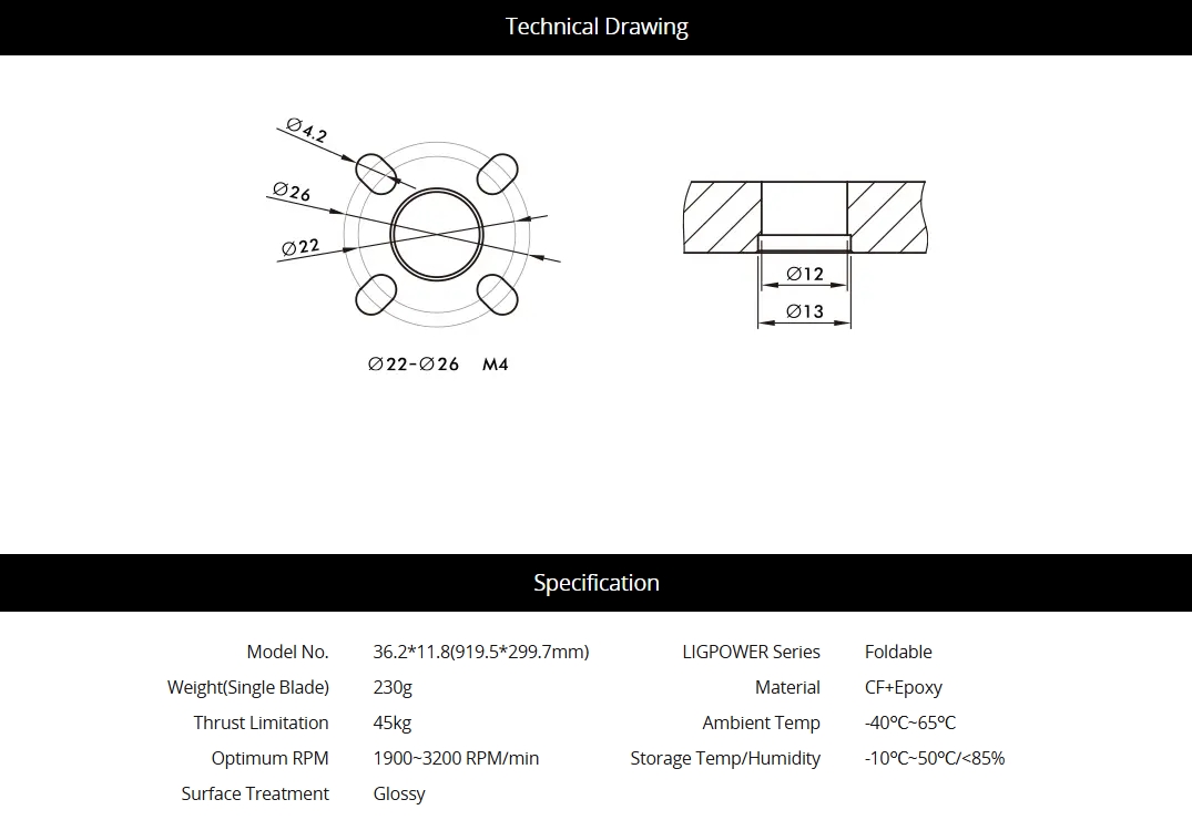 LigPower folding carbon fiber propellers redefine UAV propeller design with easy folding and precise positioning, ensuring quick deployment and compact storage. Their optimized winglet design reduces vortex effects, enhances efficiency, and improves flight stability. Built for multirotor UAVs, these propellers minimize centrifugal tension and deformation, extending lifespan and boosting overall flight performance.