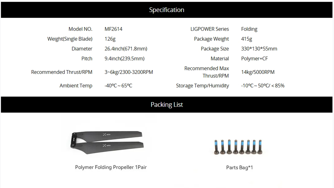 LIGPOWER MF2614-2PCS/PAIR Polymer Folding UAV Propeller