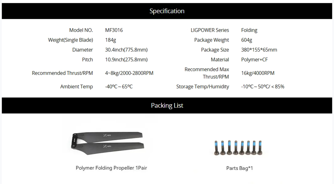 LIGPOWER MF3016-2PCS/PAIR Polymer Folding UAV Propeller