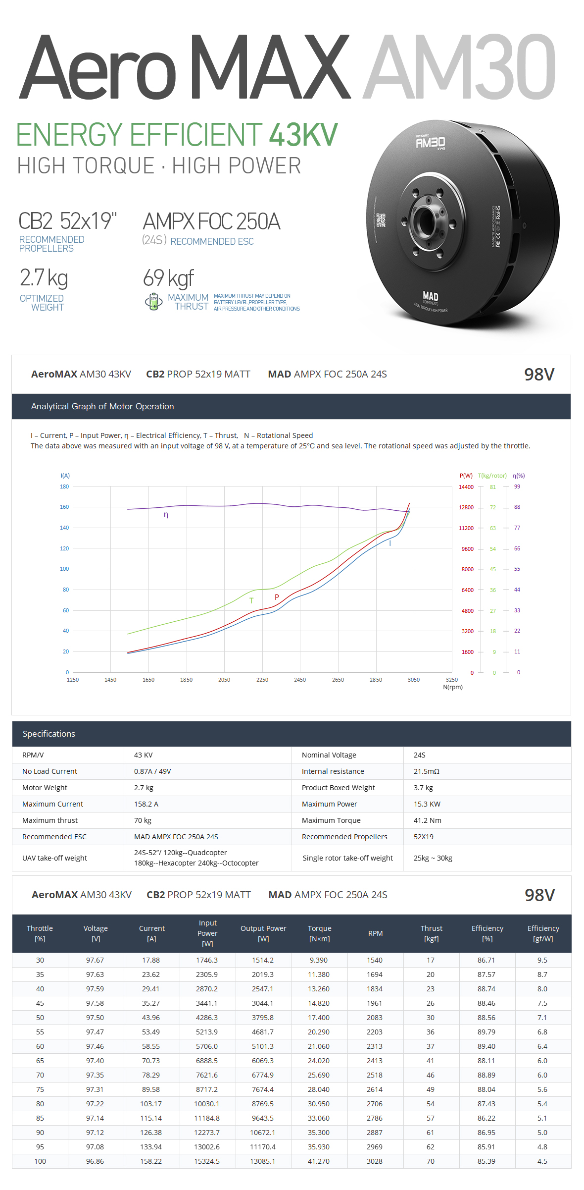 - Rated Thrust: 25-30 Kgf | Peak Thrust: 74Kgf