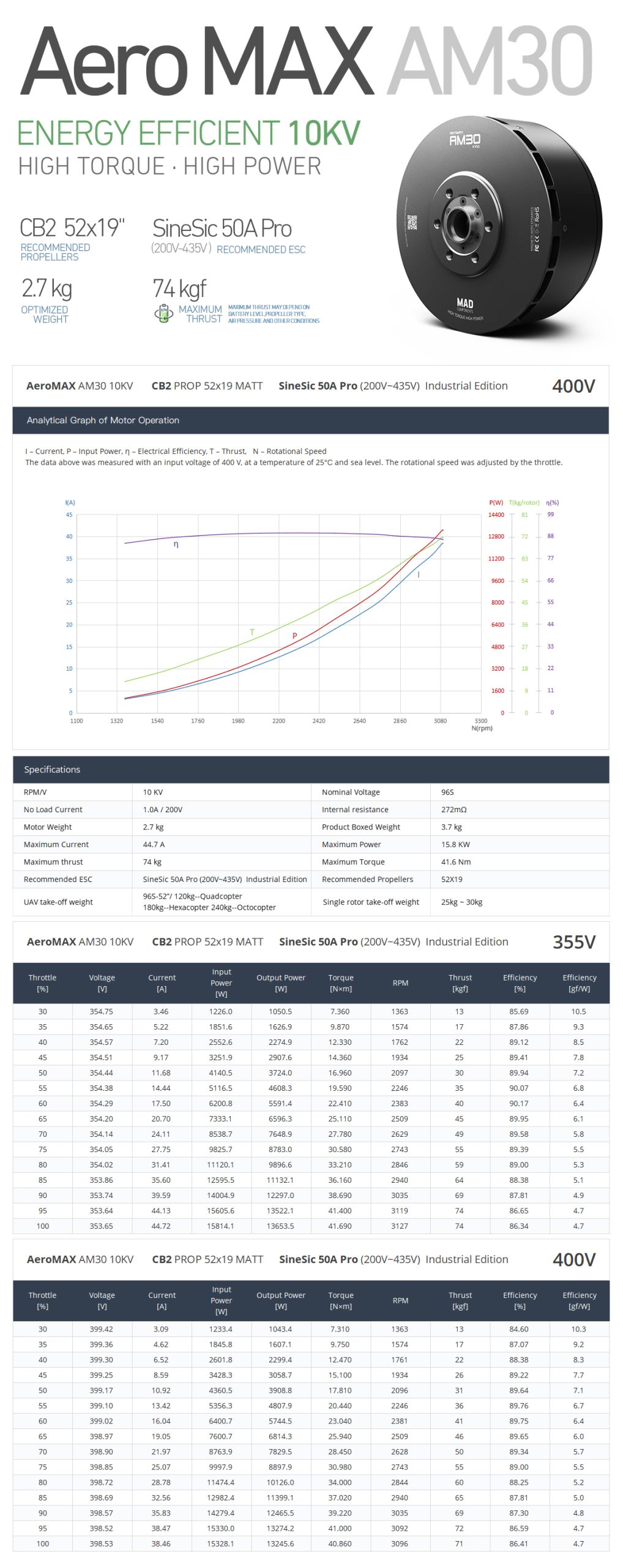 - Rated Thrust: 25-30 Kgf | Peak Thrust: 74Kgf