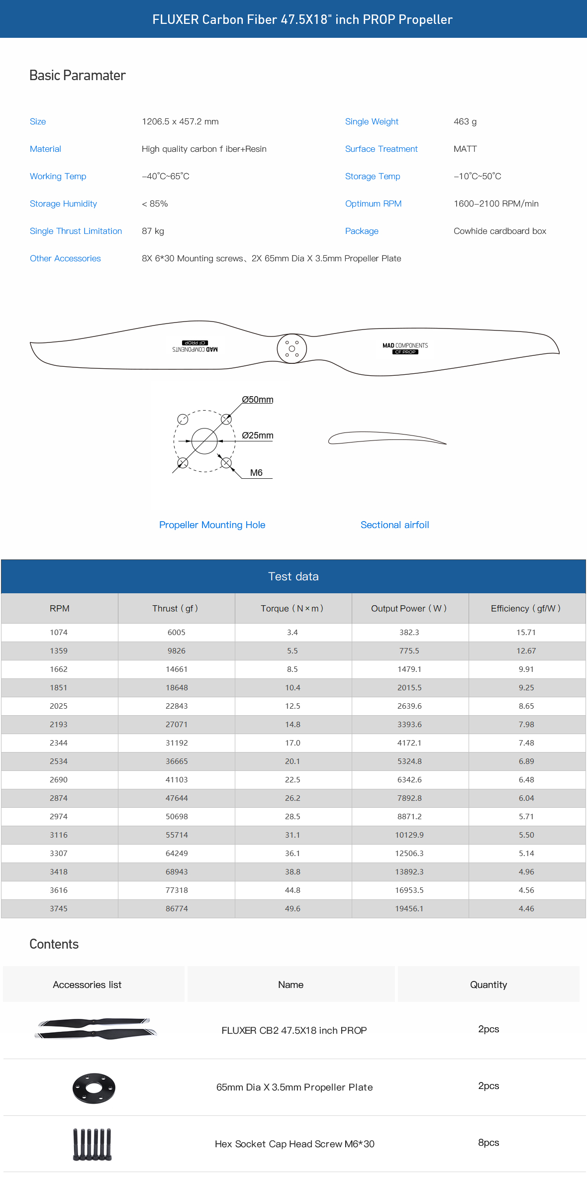 MAD CB2 PROP 47.5X18″inch Carbon Fiber Propeller for Big Drones