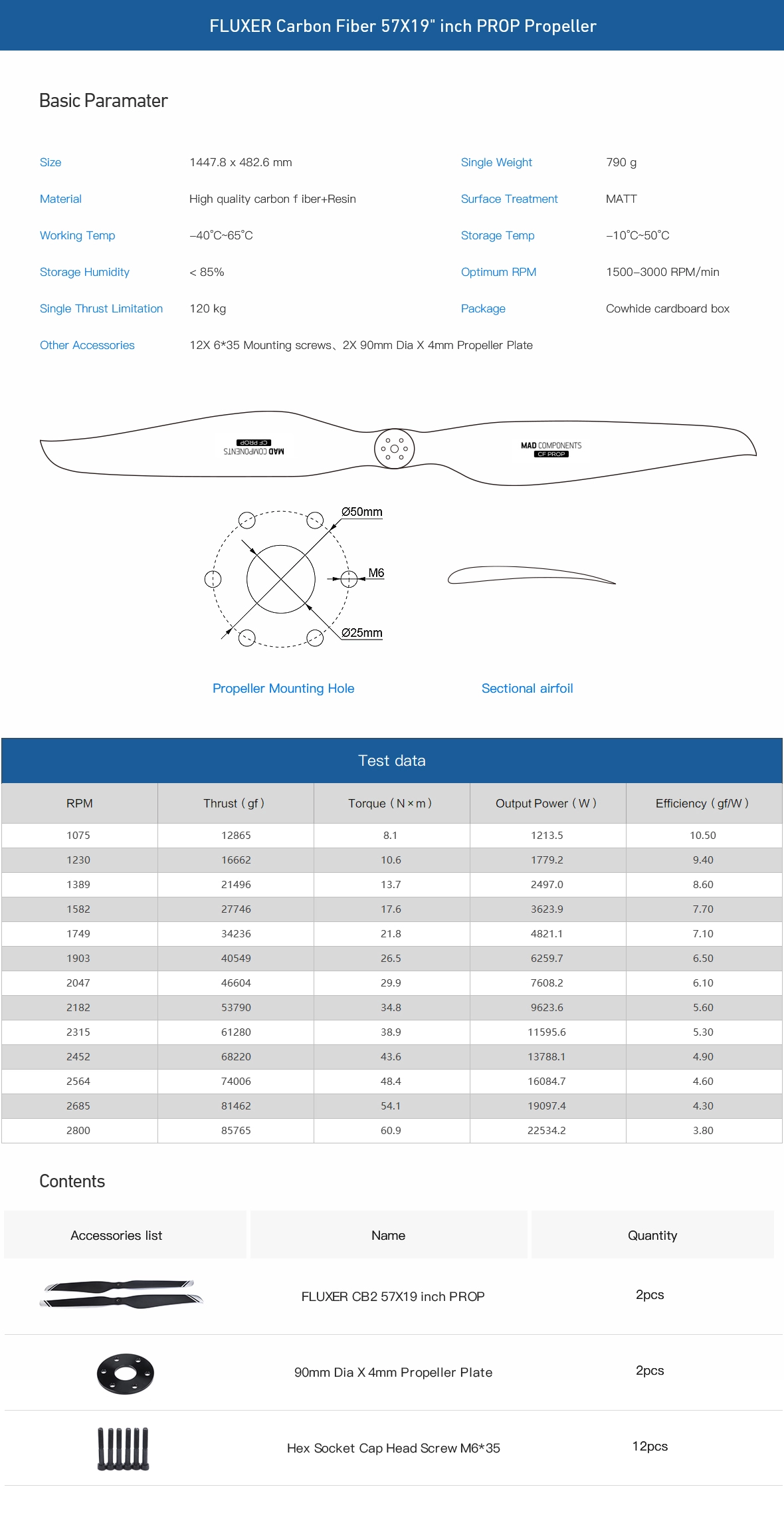 MAD CB2 PROP 57X19″inch Carbon Fiber Propeller for Big Drones