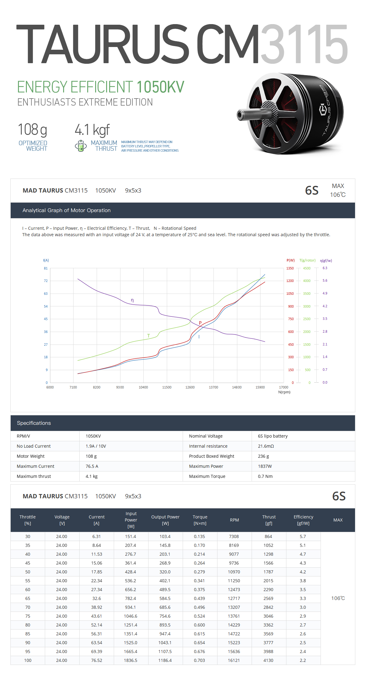 MAD Taurus CM3115 1050KV Brushless Motor for FPV Drones