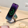 • The stylish, practical three-in-one charging station quickly replenishes your iPhone 12/13/14/15 series, Apple Watch, and AirPods in one shot.