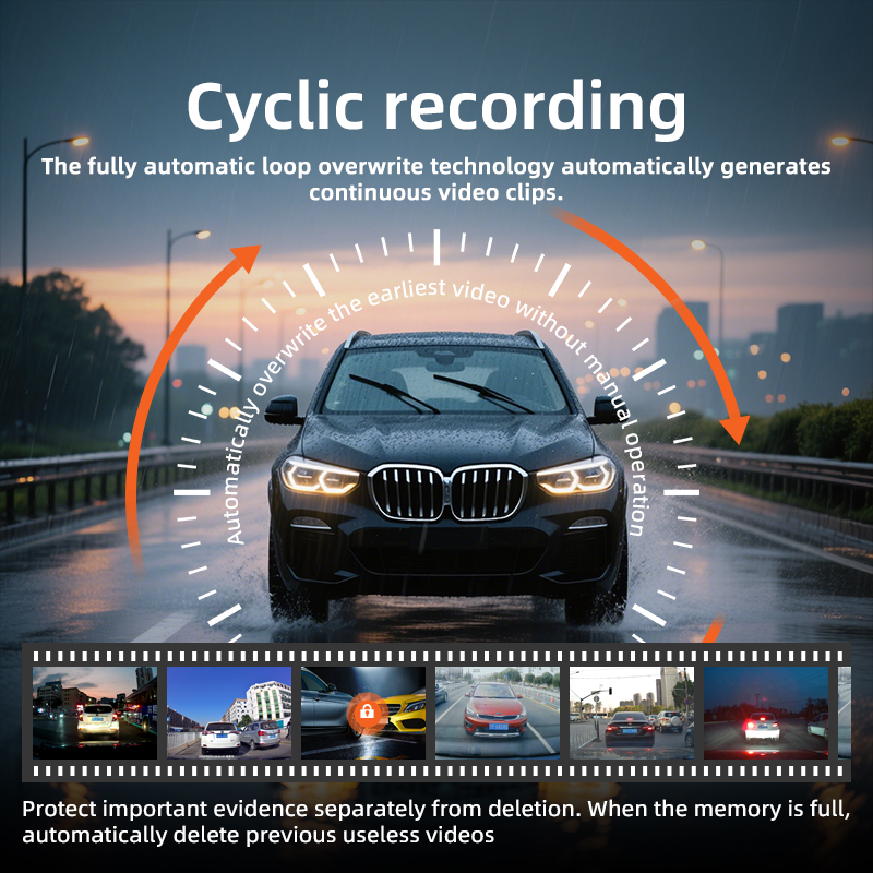 Important Note: The device has a built-in microphone, but the audio recording function can be manually and permanently disabled in the app to ensure complete in-car privacy. It also supports a parking monitor (hardwiring kit required), G-sensor collision lock, and loop recording.