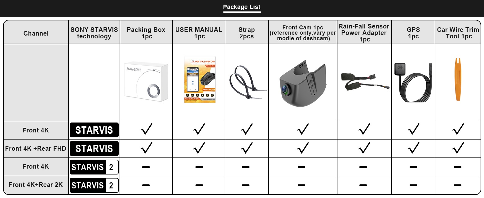 The Mangoal Dash Cam features a custom-fit design that seamlessly replaces your vehicle’s rain sensor housing for a clean, OEM-style installation. It utilizes a Sony STARVIS sensor to capture 4K video with a 150° ultra-wide viewing angle. Built-in Wi-Fi allows for real-time preview, download, and management via the dedicated app.