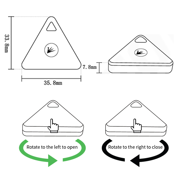 - 37.8mm × 33.8mm × 7.9mm mini-size tri-angle tag design