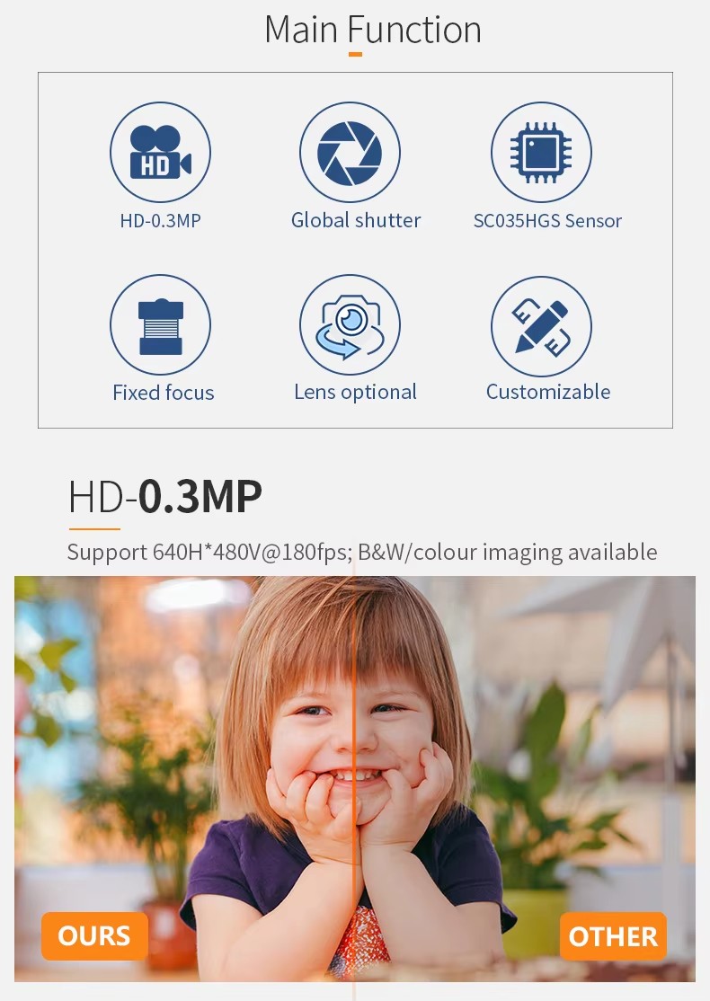Mono RBG VGA HD 0.3MP Global Shutter Camera Module