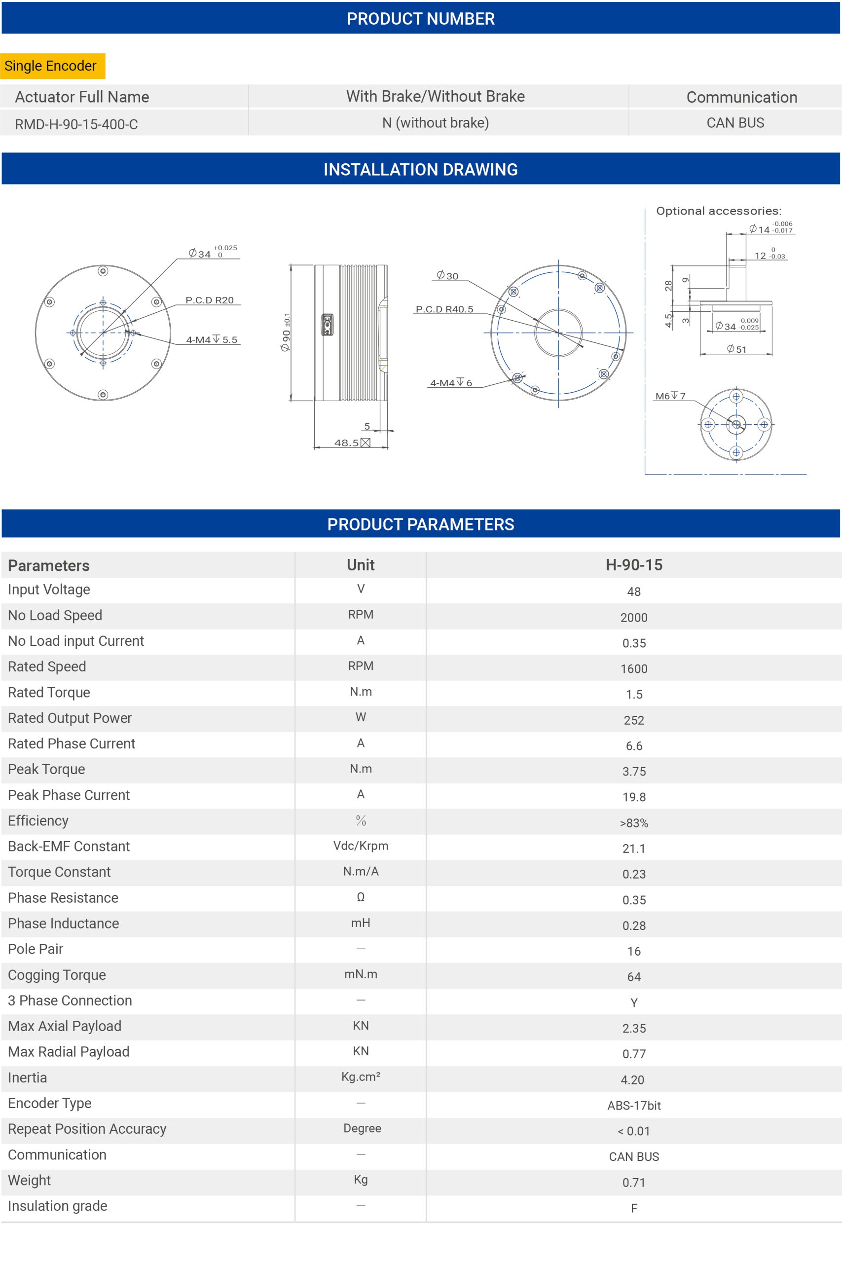 Motor with All-in-One Direct Drive Module and Built-in Drive and Temperature Sensors RMD-H-90