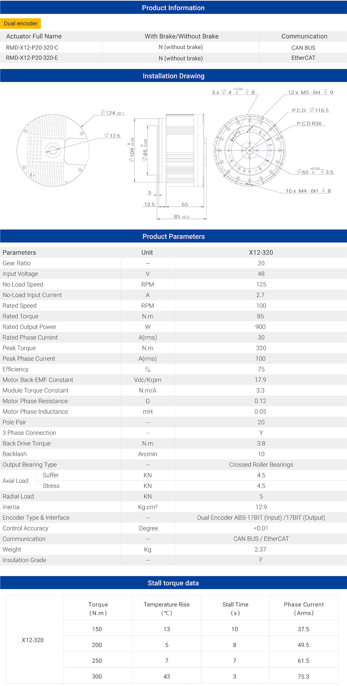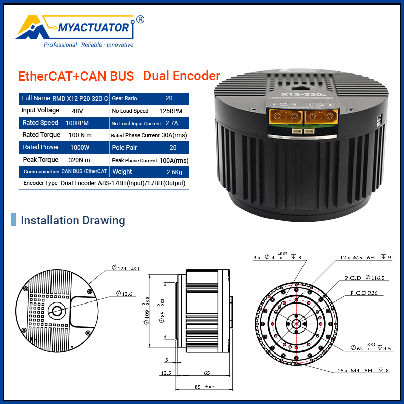 MyActuator High Torque Humanoid Robot Joint High Precision DC Motor RMD-X12-320 EtherCAT+CAN V4