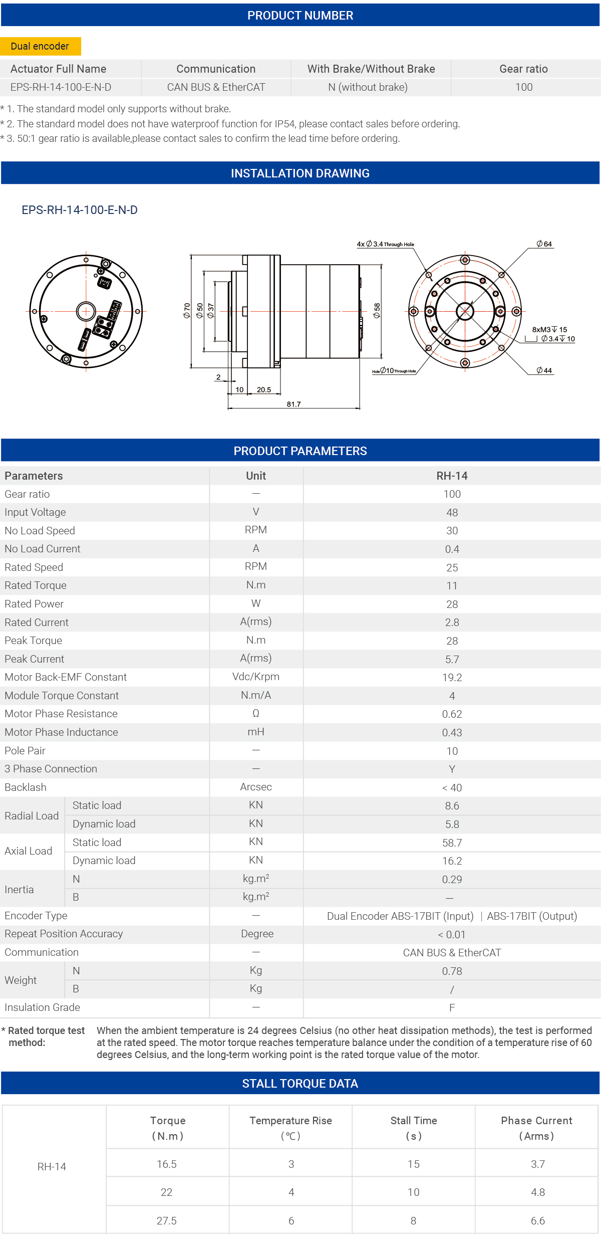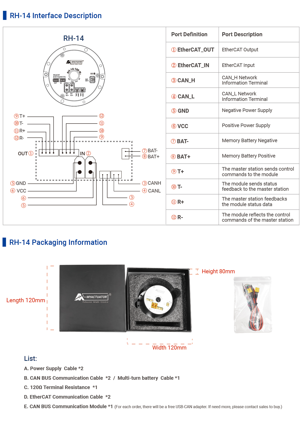 MyActuator RH-14-100-E-N-D adopts a military-grade cross roller bearing design, improving bending moment resistance by 30% and maintaining 20 arc-second accuracy under 1500N extreme bending moment, making the robot arm as stable as a rock in complex working conditions. Equipped with EtherCAT Gigabit bus + CAN dual communication protocol, the command transmission rate reaches 100Mbps, and the synchronization cycle is shortened to 250μs, allowing the multi-axis linkage accuracy to break through the millisecond limit.