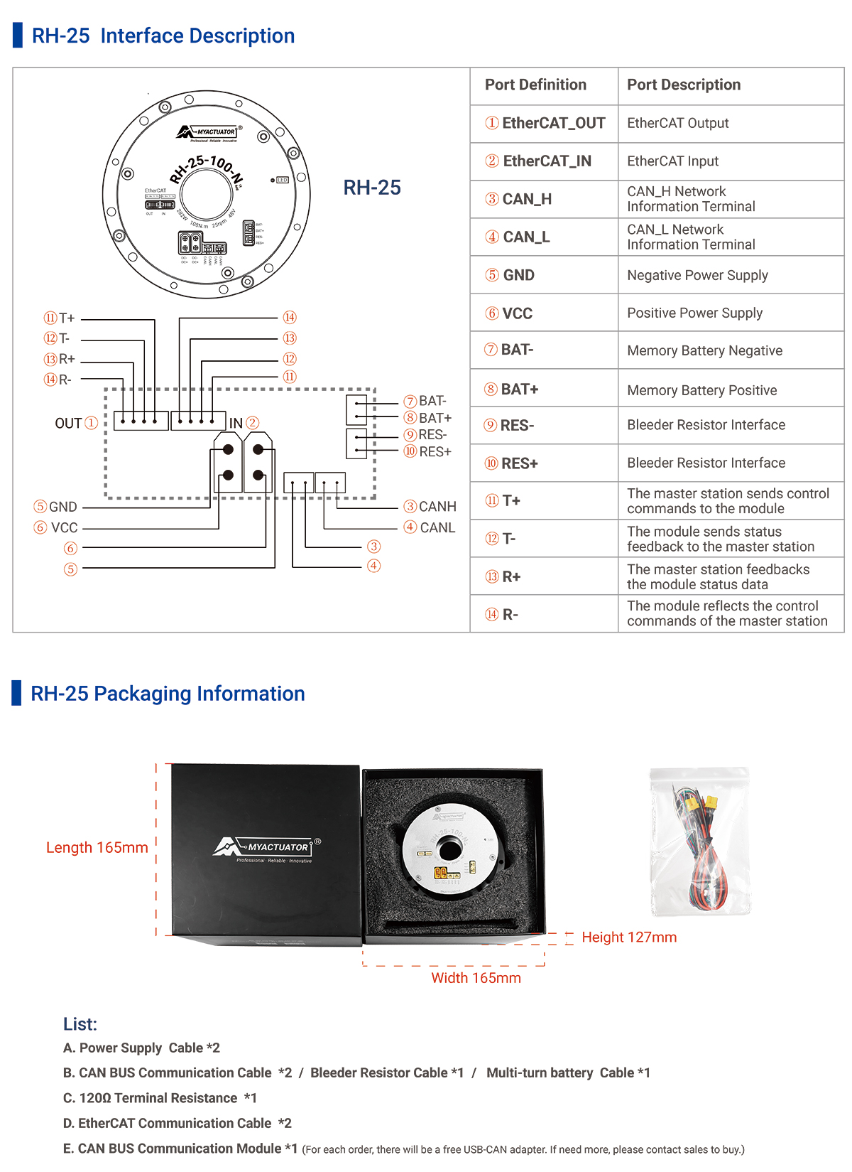 MyActuator RH-25 EtherCAT+CAN BUS Harmonic Robot Joint Motor with Large Hollow Design High Precision
