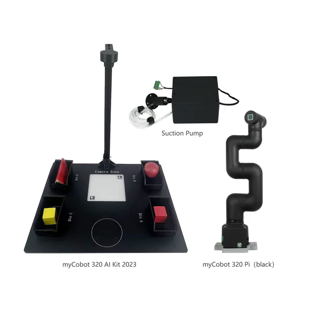myCobot 320 AI Kit, myGripper F100 Gripper, and Vertical Suction Pump Education Platform