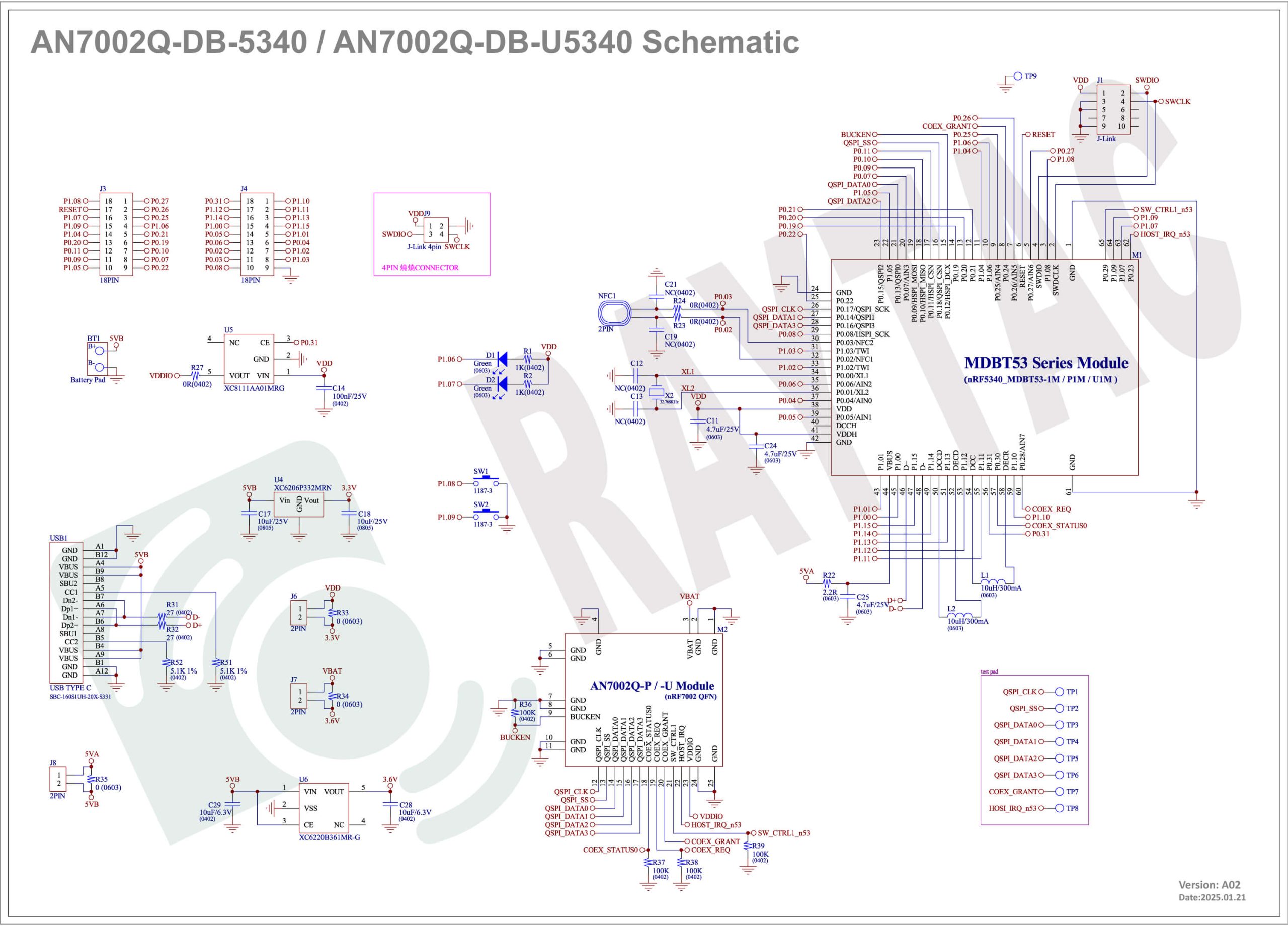 The AN7002Q-DB-5340 is used for quick debug and firmware development based on WiFi + Bluetooth Low Energy applications.