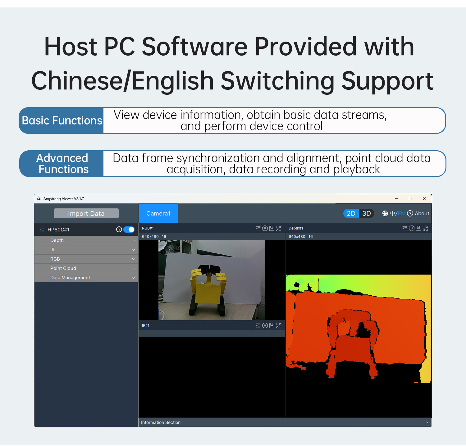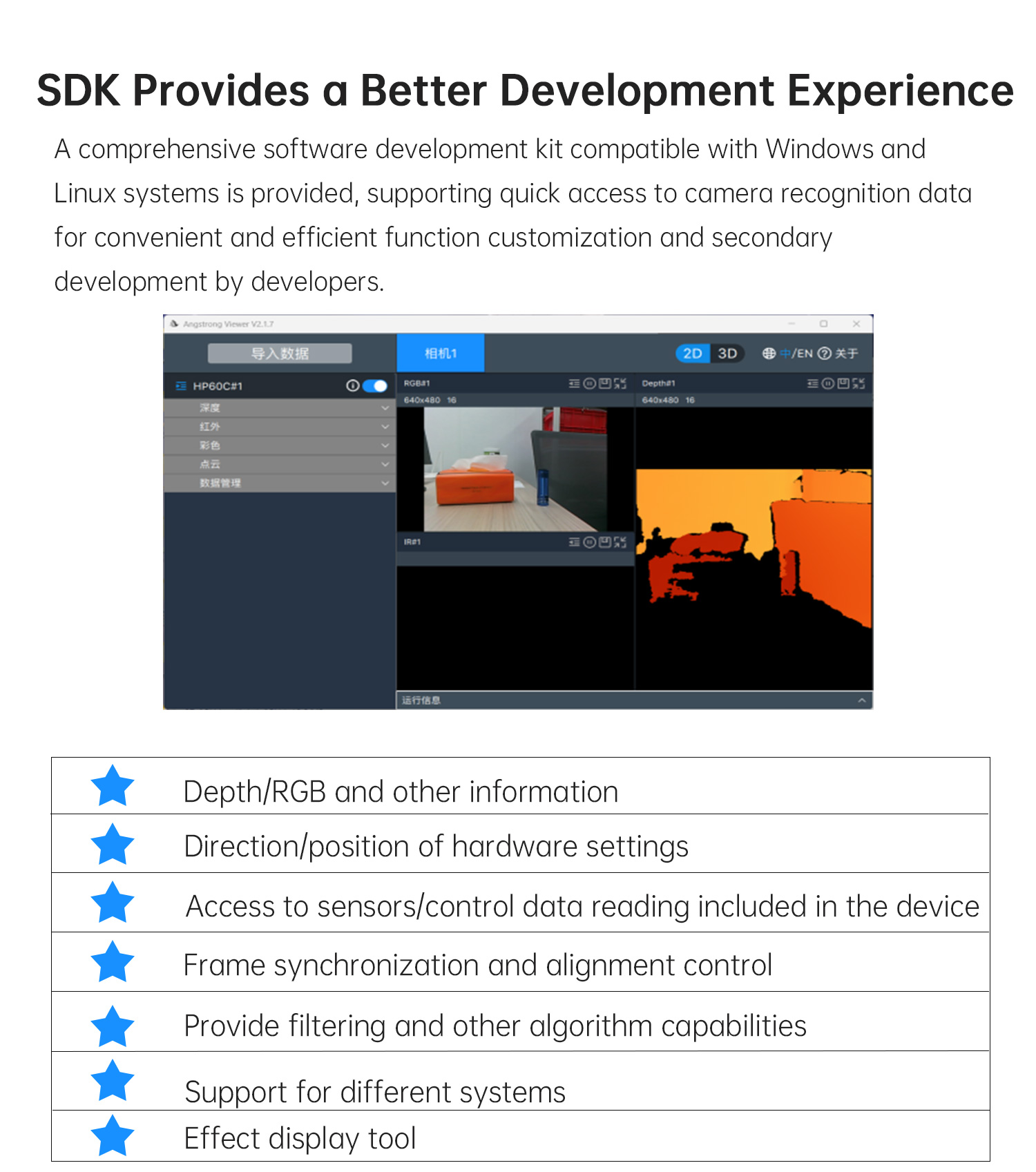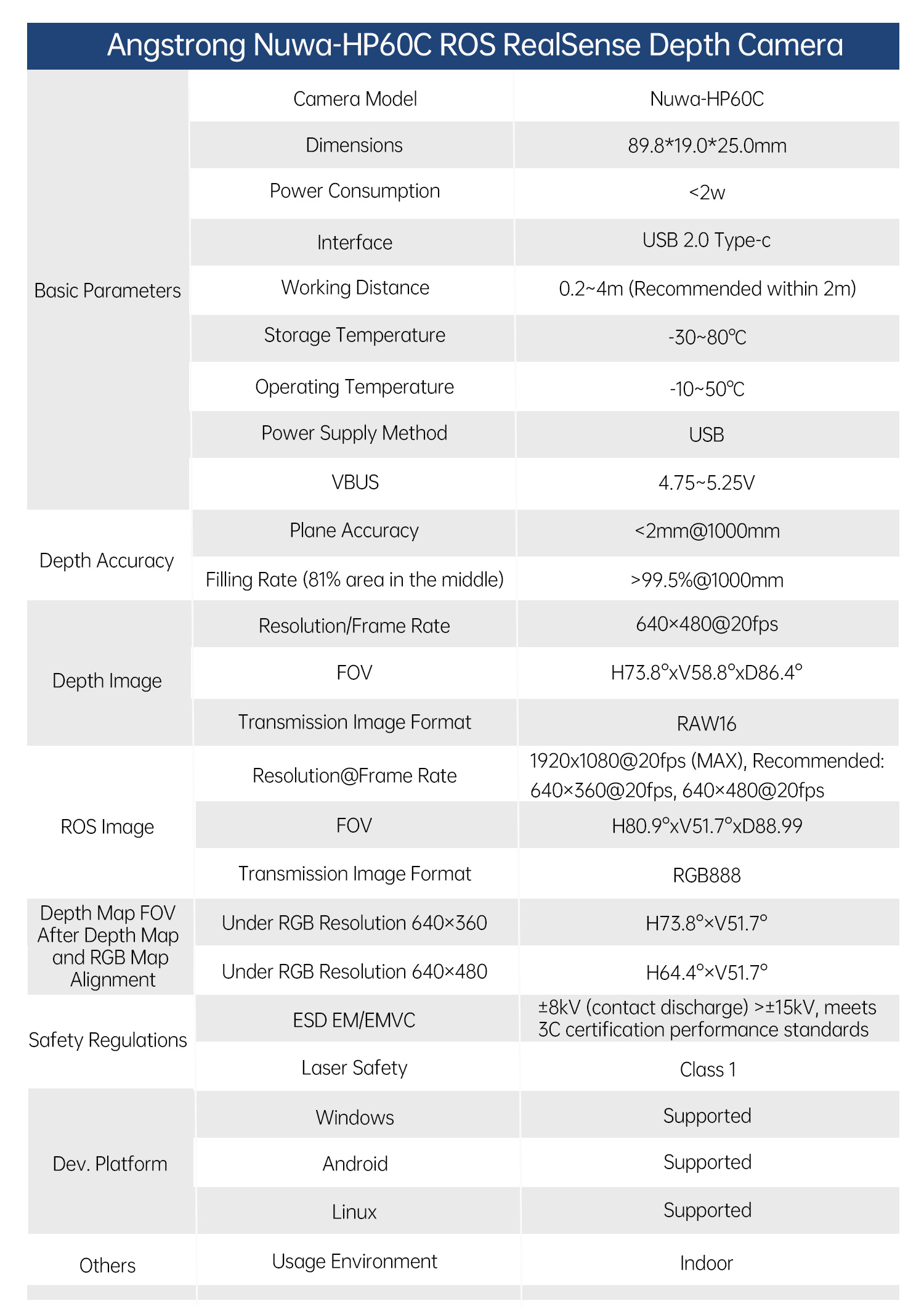 Nuwa-HP60C RGB 3D Depth Camera Structured Light Imaging USB 2.0 FOV 73.8° 0.2-4M.