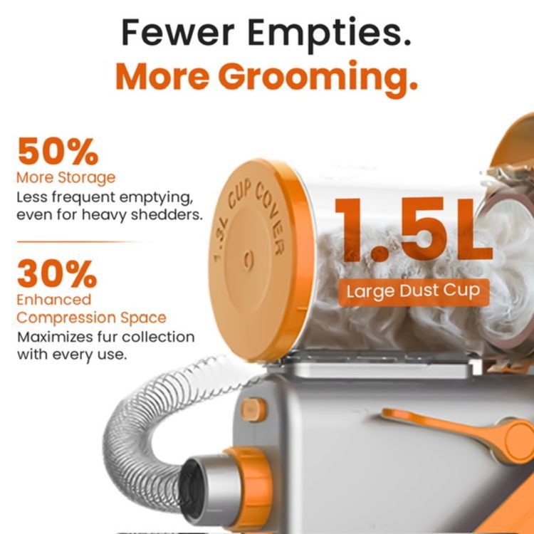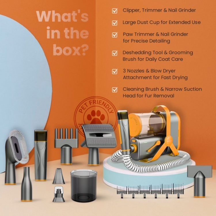 Multi-functional 9-in-1 pet grooming kit that easily trims, combs, and dries pets’ hair all in one go. Designed to provide a professional pet salon service that improves their overall appearance. Equipped with specialized tools and attachments that vacuum hair while in use, extreme adjustable suction power for removing loose fur, dirt, and debris from your pet’s coat. The hair clippers, blow dryer, paw trimmer, nail grinder, de-shedder comb, cleaning brush, and extension cup are included. Great for reducing the recirculation and spread of allergens around your home.