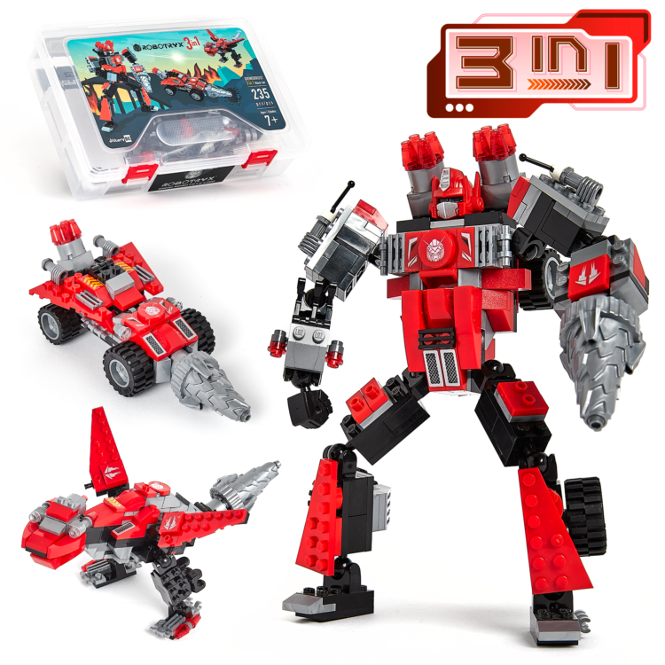 ENDLESS IMAGINATION FOR YOUR CHILD This creative building blocks set combines 3 form sets: a Robot figure, a Construction car, and an Animal figure – all made out of building bricks connecting singly to each other. ROBOTRYX Set has been designed by 3 STEM learning forms of BUILD ❯ UNDO ❯ REBUILD ideas to keep your child’s curiosity and creativity at the same level. We have created this engineering toy set to understand your child’s need for new excitement every time they play.